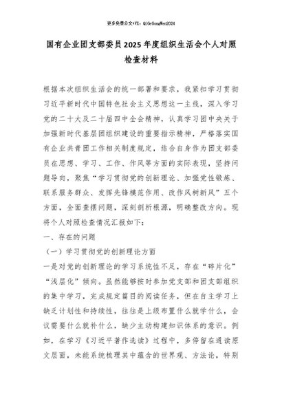 【七哥公文】2026年:国有企业团支部委员2025年度组织生活会个人对照检查材料_副本+更多免费公文+VX:QiGeGongWen2024