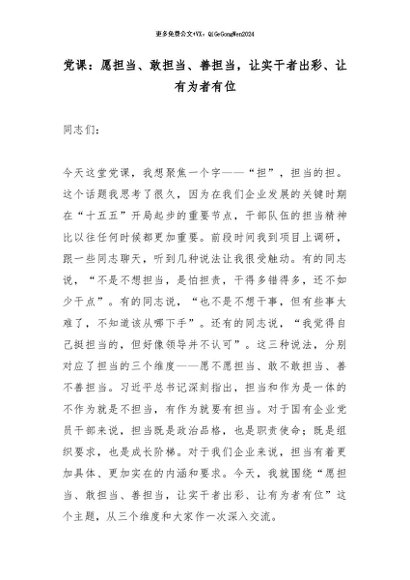【七哥公文】2026年:党课:愿担当、敢担当、善担当,让实干者出彩、让有为者有位_副本+更多免费公文+VX:QiGeGongWen2024