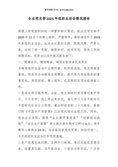 / 【七哥公文】2026年:企业党支部2025年组织生活会情况报告_副本+更多免费公文+VX:QiGeGongWen2024