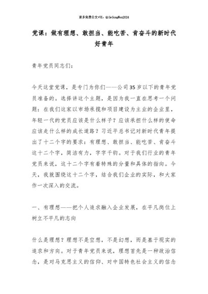 【七哥公文】2026年:党课:做有理想、敢担当、能吃苦、肯奋斗的新时代好青年_副本+更多免费公文+VX:QiGeGongWen2024