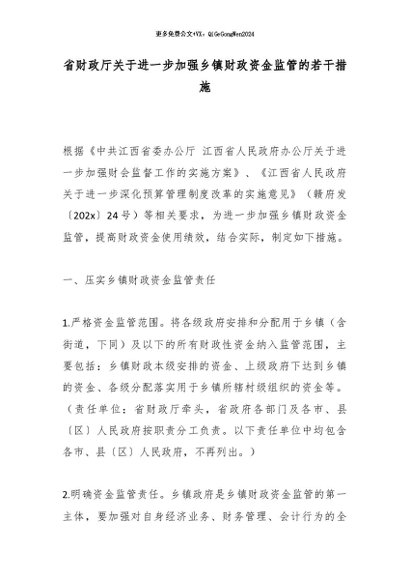 【七哥公文】2026年:省财政厅关于进一步加强乡镇财政资金监管的若干措施_副本+更多免费公文+VX:QiGeGongWen2024