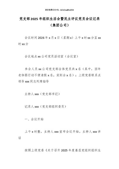【七哥公文】2026年:党支部2025年组织生活会暨民主评议党员会议记录(集团公司)_副本+更多免费公文+VX:QiGeGongWen2024