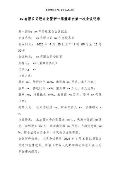 【七哥公文】2026年:Xx有限公司股东会暨新一届董事会第一次会议记录_副本+更多免费公文+VX:QiGeGongWen2024