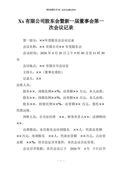 / 【七哥公文】2026年:Xx有限公司股东会暨新一届董事会第一次会议记录+更多免费公文+VX:QiGeGongWen2024