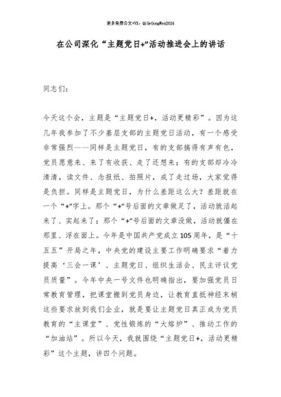 【七哥公文】2026年:在公司深化“主题党日+”活动推进会上的讲话_副本+更多免费公文+VX:QiGeGongWen2024