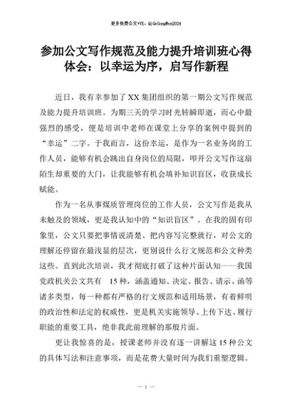 【七哥公文】2026年:参加公文写作规范及能力提升培训班心得体会:以幸运为序,启写作新程+更多免费公文+VX:QiGeGongWen2024