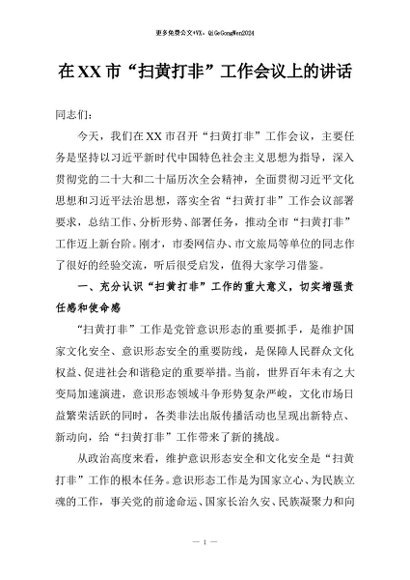 / 【七哥公文】2026年:在XX市“扫黄打非”工作会议上的讲话+更多免费公文+VX:QiGeGongWen2024