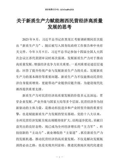 / 【七哥公文】2026年:关于新质生产力赋能湘西民营经济高质量发展的思考+更多免费公文+VX:QiGeGongWen2024
