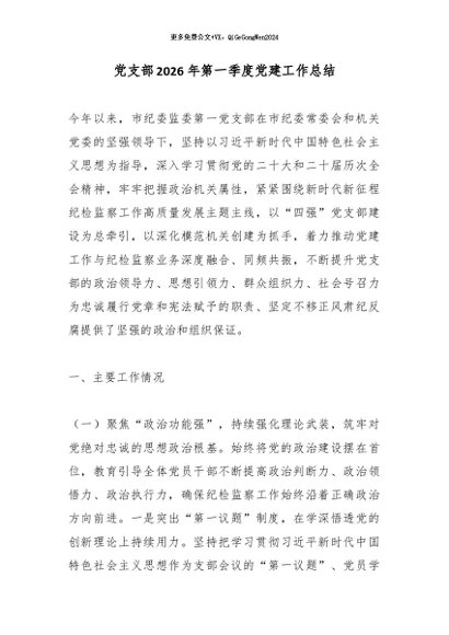/ 【七哥公文】2026年:党支部2026年第一季度党建工作总结_副本+更多免费公文+VX:QiGeGongWen2024