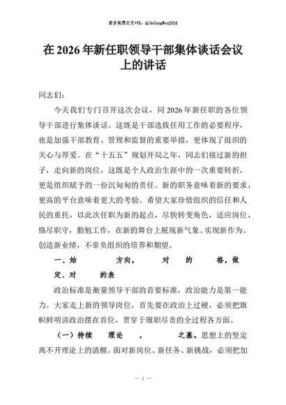/ 【七哥公文】2026年:在2026年新任职领导干部集体谈话会议上的讲话+更多免费公文+VX:QiGeGongWen2024
