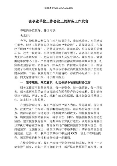 / 【七哥公文】2026年:在事业单位工作会议上的财务工作发言+更多免费公文+VX:QiGeGongWen2024