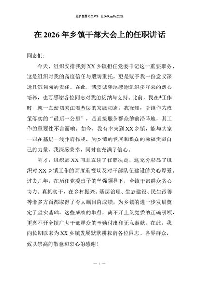 / 【七哥公文】2026年:在2026年乡镇干部大会上的任职讲话+更多免费公文+VX:QiGeGongWen2024