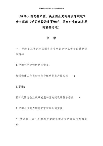 【七哥公文】2026年:(51篇)国资委系统、央企国企党的建设专题教育素材汇编(党的建设的重要论述、国有企业改革发展的重要论述)+更多免费公文+VX:QiGeGongWen2024