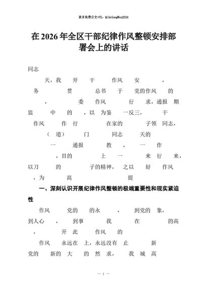 【七哥公文】2026年:在2026年全区干部纪律作风整顿安排部署会上的讲话+更多免费公文+VX:QiGeGongWen2024