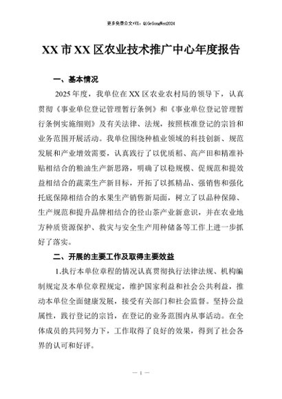 / 【七哥公文】2026年:XX市XX区农业技术推广中心年度报告+更多免费公文+VX:QiGeGongWen2024