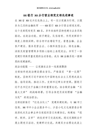 【七哥公文】2026年:XX 银行 XX 分行营业部党支部先进事迹_副本+更多免费公文+VX:QiGeGongWen2024