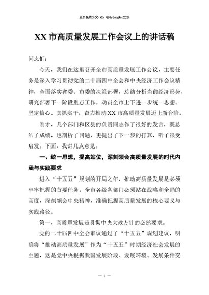 / 【七哥公文】2026年:XX市高质量发展工作会议上的讲话稿+更多免费公文+VX:QiGeGongWen2024