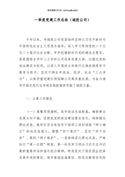 / 【七哥公文】2026年:一季度党建工作总结(城投公司)_副本+更多免费公文+VX:QiGeGongWen2024