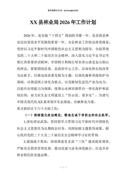 / 【七哥公文】2026年:XX县林业局2026年工作计划+更多免费公文+VX:QiGeGongWen2024