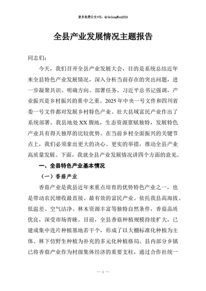 【七哥公文】2026年:全县产业发展情况主题报告+更多免费公文+VX:QiGeGongWen2024