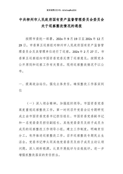 【七哥公文】2026年:中共柳州市人民政府国有资产监督管理委员会委员会关于巡察整改情况的通报_副本+更多免费公文+VX:QiGeGongWen2024