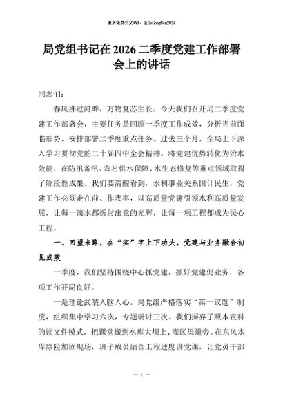 / 【七哥公文】2026年:局党组书记在2026二季度党建工作部署会上的讲话+更多免费公文+VX:QiGeGongWen2024