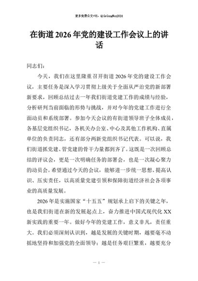 / 【七哥公文】2026年:在街道2026年党的建设工作会议上的讲话+更多免费公文+VX:QiGeGongWen2024