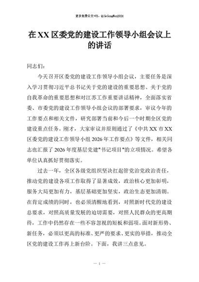 / 【七哥公文】2026年:在XX区委党的建设工作领导小组会议上的讲话+更多免费公文+VX:QiGeGongWen2024