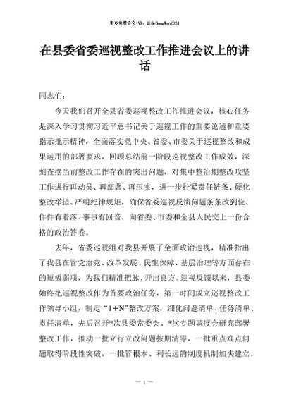 / 【七哥公文】2026年:在县委省委巡视整改工作推进会议上的讲话+更多免费公文+VX:QiGeGongWen2024