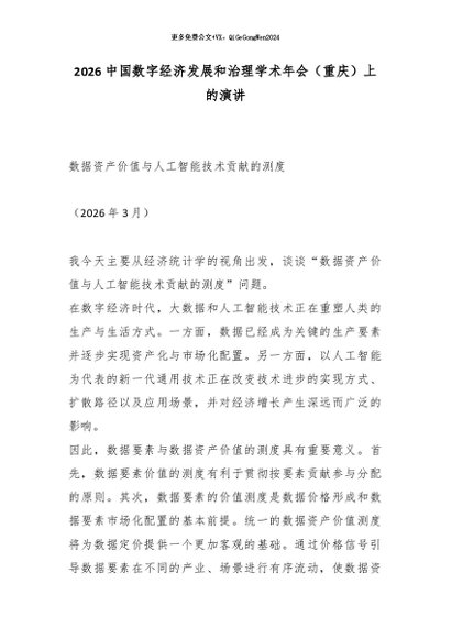 【七哥公文】2026年:2026中国数字经济发展和治理学术年会(重庆)上的演讲_副本+更多免费公文+VX:QiGeGongWen2024