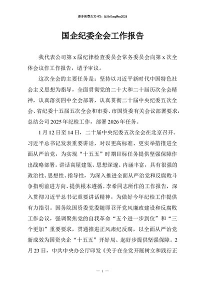 / 【七哥公文】2026年:国企纪委全会工作报告+更多免费公文+VX:QiGeGongWen2024