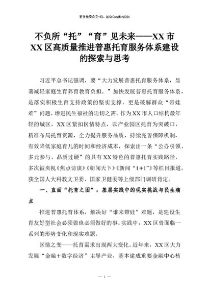 【七哥公文】2026年:不负所“托”“育”见未来——XX市XX区高质量推进普惠托育服务体系建设的探索与思考+更多免费公文+VX:QiGeGongWen2024