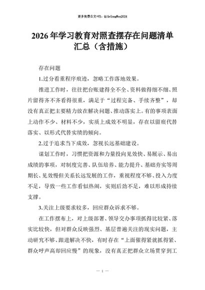 【七哥公文】2026年:2026年学习教育对照查摆存在问题清单汇总(含措施)+更多免费公文+VX:QiGeGongWen2024