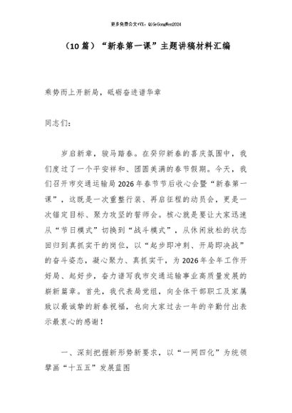/ 【七哥公文】2026年:(10篇)“新春第一课”主题讲稿材料汇编+更多免费公文+VX:QiGeGongWen2024
