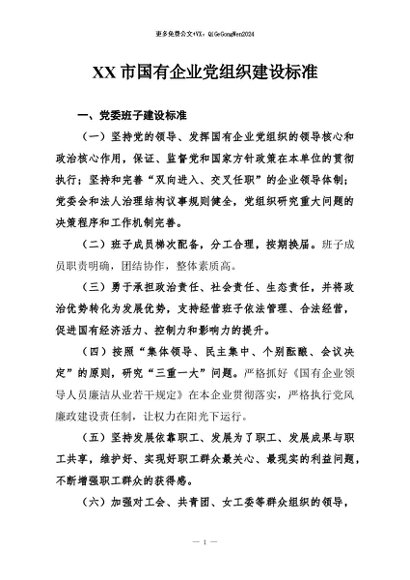 / 【七哥公文】2026年:XX市国有企业党组织建设标准+更多免费公文+VX:QiGeGongWen2024