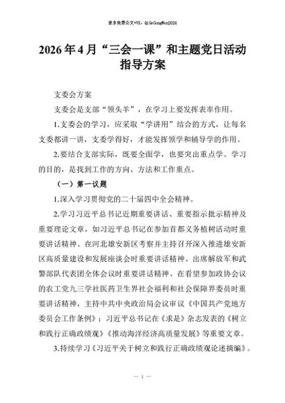 / 【七哥公文】2026年:2026年4月“三会一课”和主题党日活动指导方案+更多免费公文+VX:QiGeGongWen2024