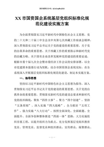 【七哥公文】2026年:XX市国资国企系统基层党组织标准化规范化建设实施方案+更多免费公文+VX:QiGeGongWen2024