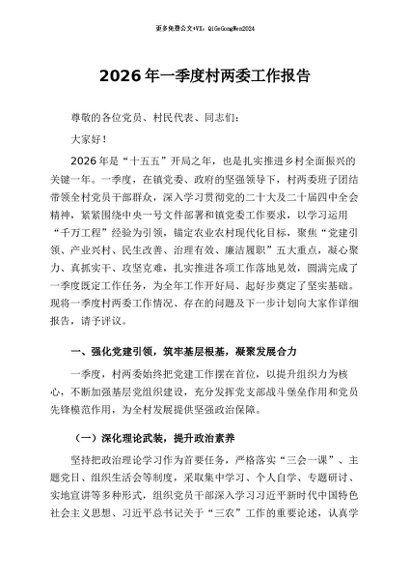 / 【七哥公文】2026年:2026年一季度村两委工作报告+更多免费公文+VX:QiGeGongWen2024