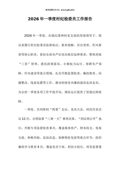 / 【七哥公文】2026年:2026年一季度村纪检委员工作报告+更多免费公文+VX:QiGeGongWen2024