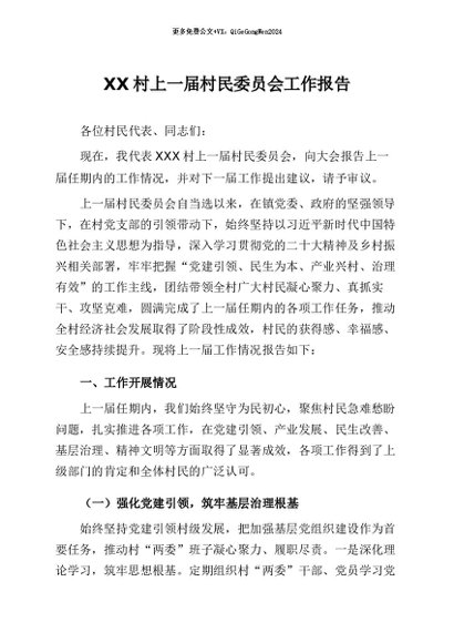 / 【七哥公文】2026年:XX村上一届村民委员会工作报告+更多免费公文+VX:QiGeGongWen2024