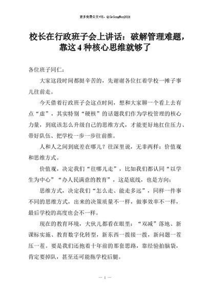 / 【七哥公文】2025年:校长讲话:破解管理难题,靠这4种核心思维就够了+更多免费公文+VX:QiGeGongWen2024