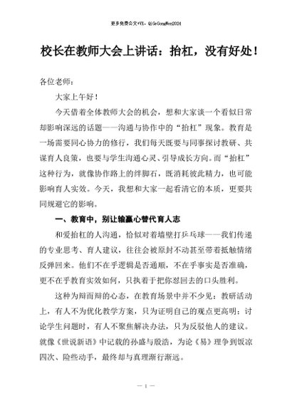 / 【七哥公文】2025年:校长在教师大会上讲话:抬杠,没有好处!+更多免费公文+VX:QiGeGongWen2024