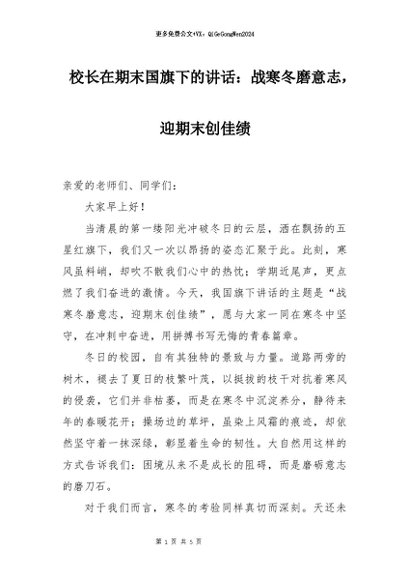 【七哥公文】2025年:校长在期末国旗下的讲话:战寒冬磨意志,迎期末创佳绩+更多免费公文+VX:QiGeGongWen2024