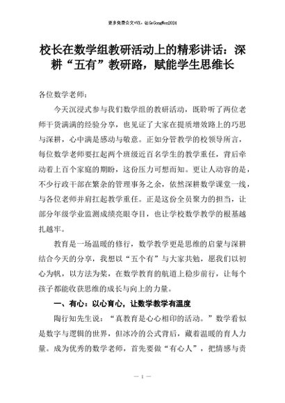 【七哥公文】2025年:校长在数学组教研活动上的精彩讲话:深耕“五有”教研路,赋能学生思维长+更多免费公文+VX:QiGeGongWen2024