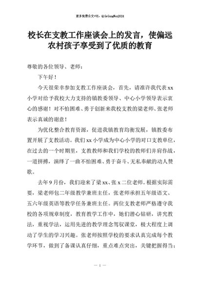 【七哥公文】2025年:校长在支教工作座谈会上的发言,使偏远农村孩子享受到了优质的教育+更多免费公文+VX:QiGeGongWen2024