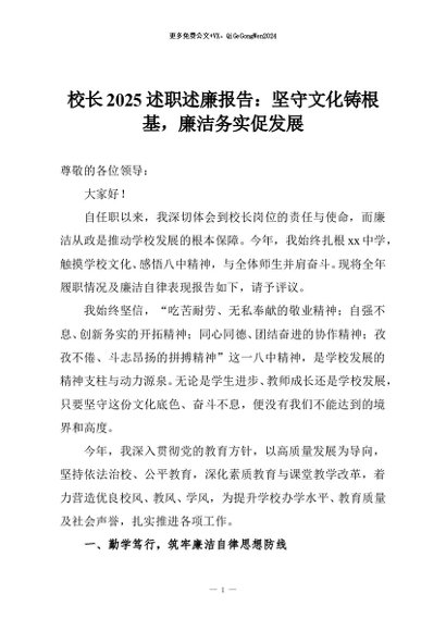【七哥公文】2025年:校长2025述职述廉报告:坚守文化铸根基,廉洁务实促发展+更多免费公文+VX:QiGeGongWen2024