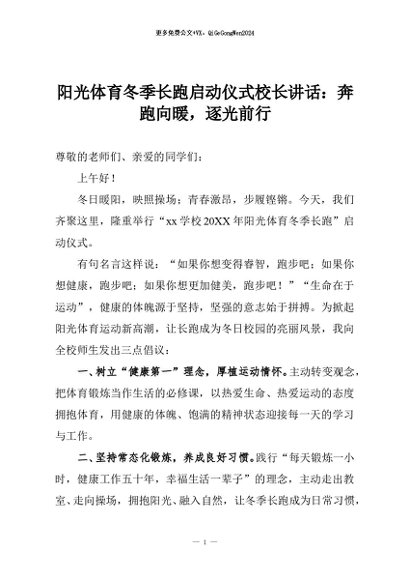 【七哥公文】2025年:阳光体育冬季长跑启动仪式校长讲话:奔跑向暖,逐光前行+更多免费公文+VX:QiGeGongWen2024