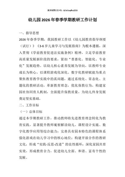 / 【七哥公文】2025年:幼儿园2026年春季学期教研工作计划+更多免费公文+VX:QiGeGongWen2024