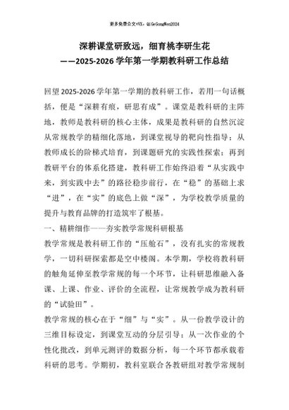 【七哥公文】2025年:深耕课堂研致远,细育桃李研生花——2025-2026学年第一学期教科研工作总结+更多免费公文+VX:QiGeGongWen2024
