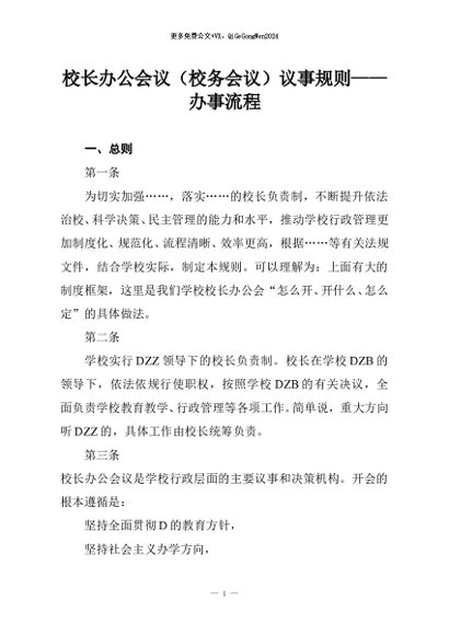 【七哥公文】2025年:校长办公会议(校务会议)议事规则——办事流程+更多免费公文+VX:QiGeGongWen2024
